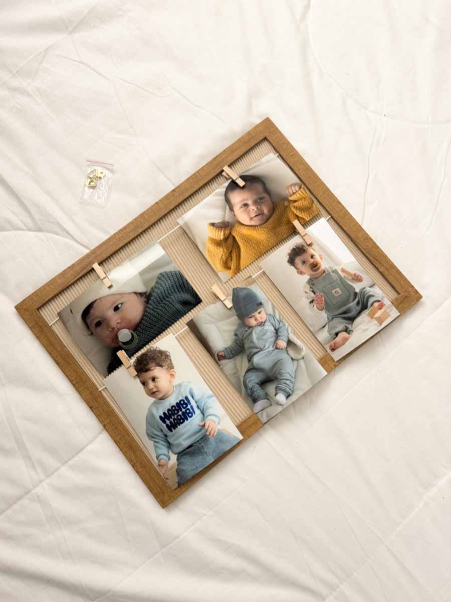 Un cadre plein de douceur pour garder vivants les plus beaux souvenirs de votre bout de chou.Grâce à ses ficelles et pinces en bois, il permet d’exposer jusqu’à 6 photos et de les changer facilement au fil du temps. Son design authentique s’intègre harmonieusement dans une chambre d’enfant ou un espace familial.