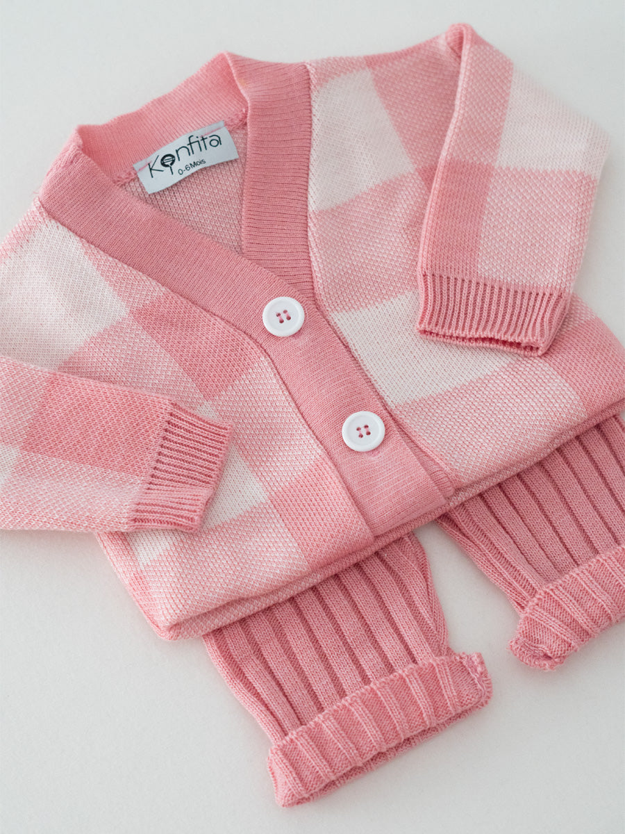 Adorable pack carreaux rose pour votre petite, comporte 2 articles :