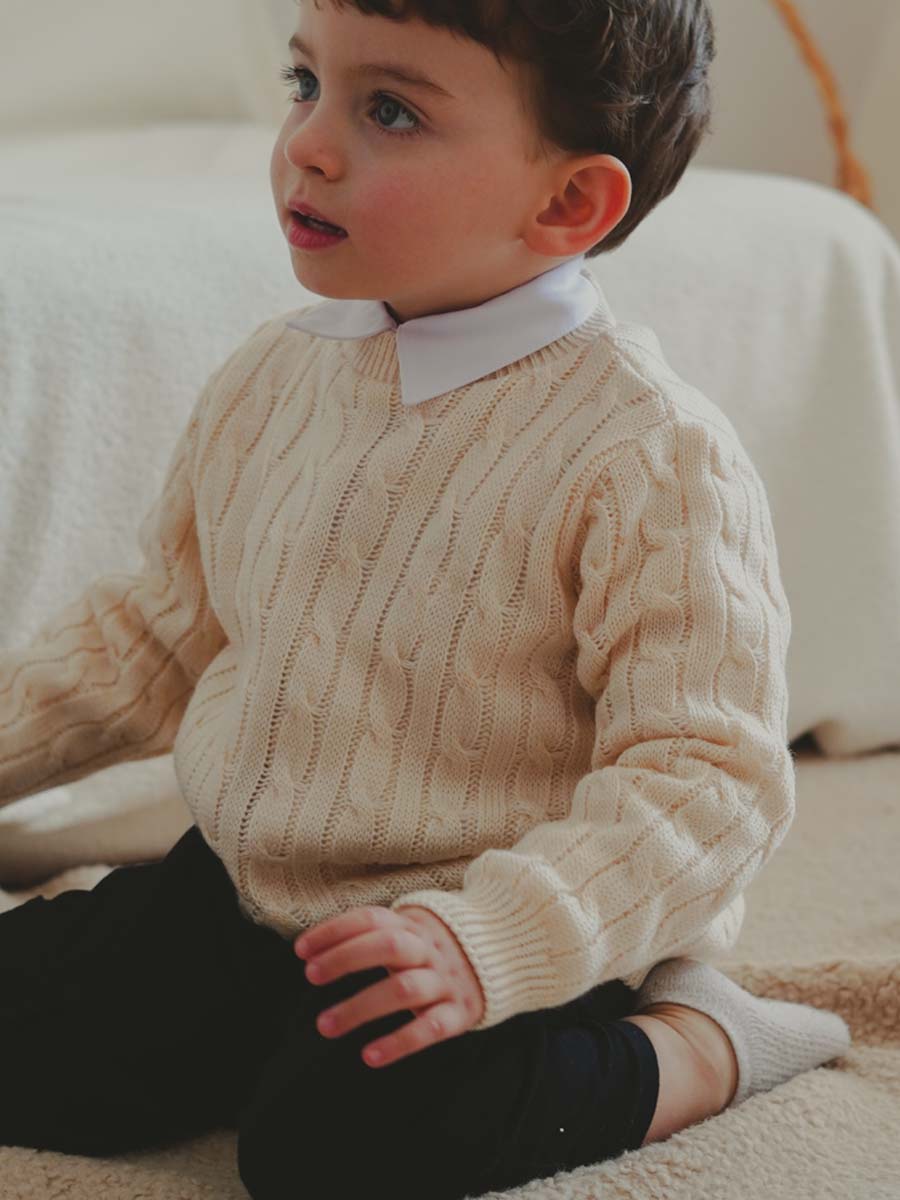 Un pull uni en tricot bien chaud, indispensable dans la garde-robe de votre enfant !